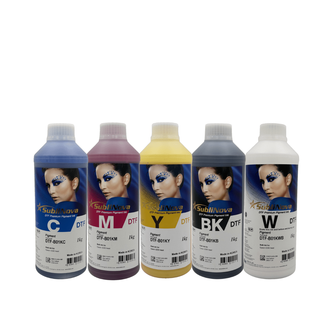 DTF inks have been formulated by InkTec’s in-house research and development team and have undergone rigorous testing to create a smooth ink flow when printing. They are available in 5 colors: white, black, cyan, magenta and yellow.