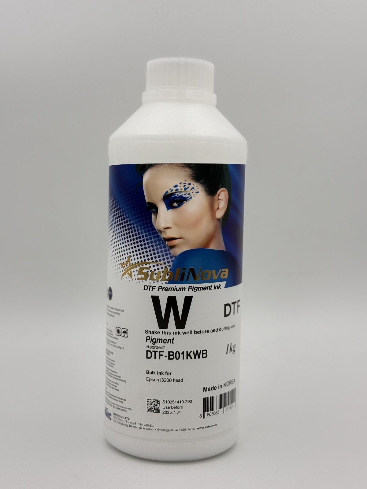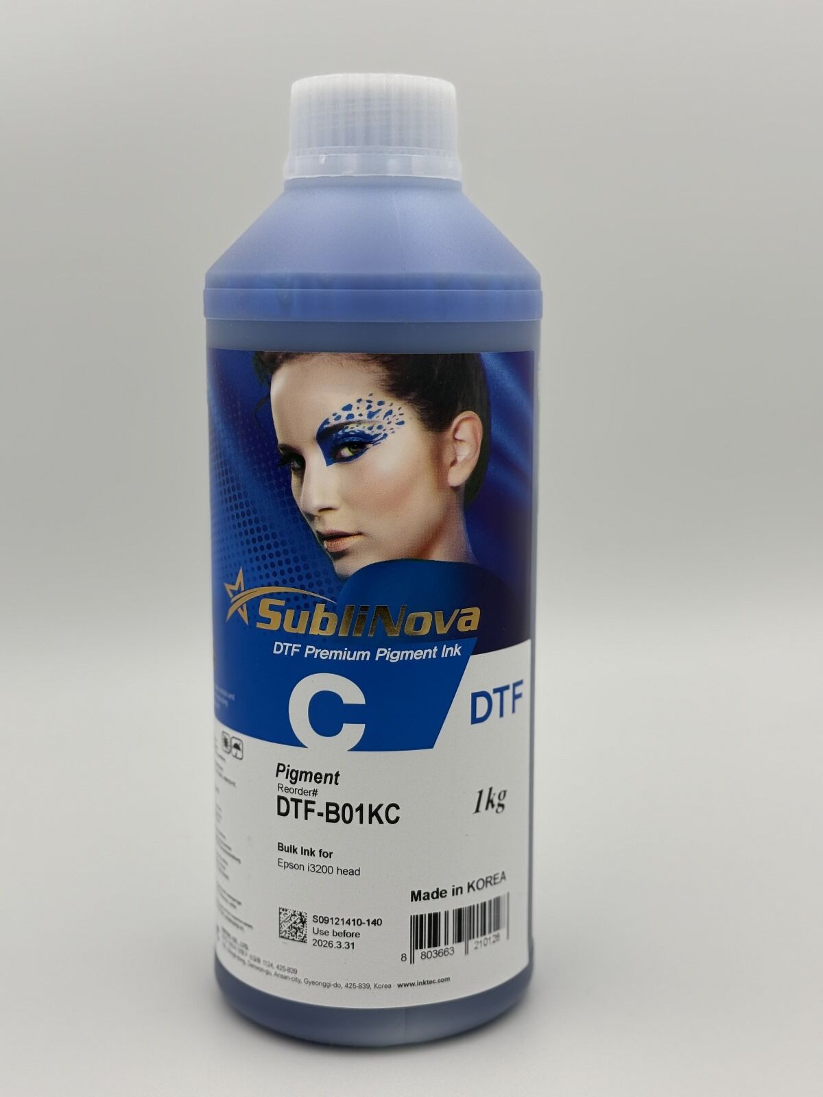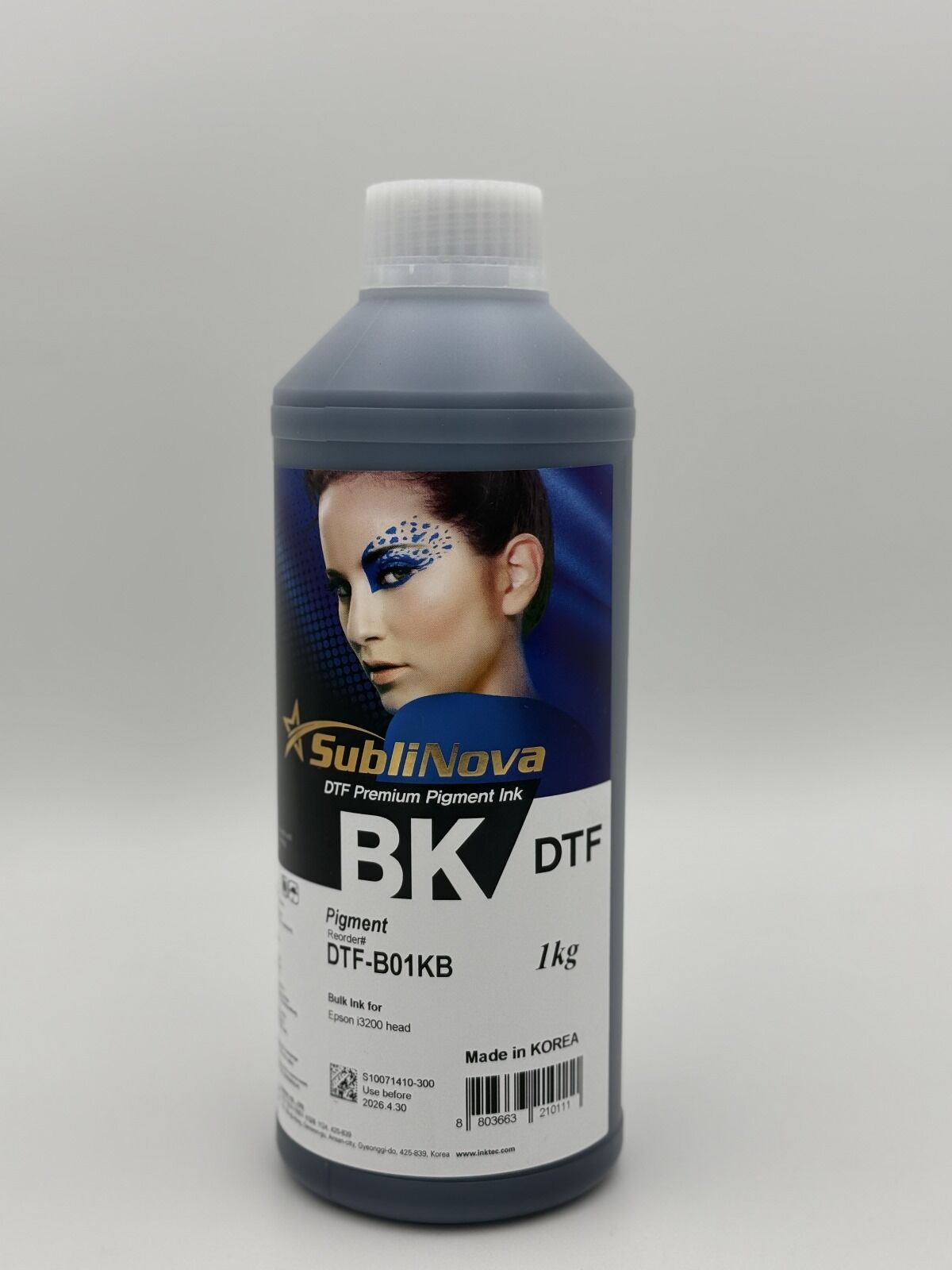 One liter bottle of ink for DTF (direct to film) printing for application on cotton garments, leather, cardboard,…